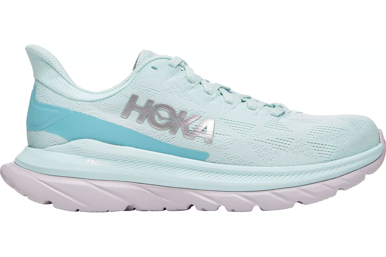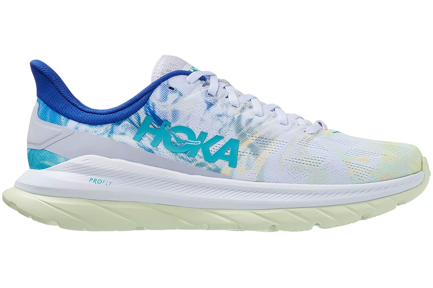 The Hoka Mach 4 has great color options and a lower looking profile than some of the gigantic Hokas. These shoes look great on the run and around town.